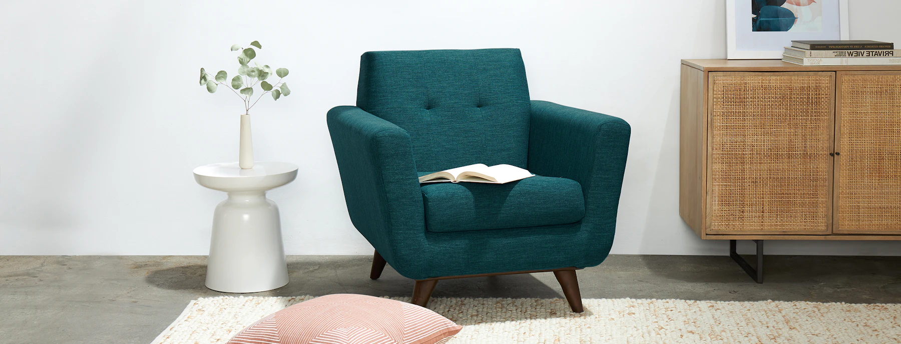 A compact burst of Mid-Century sophistication, the Hughes Apartment Chair brings retro charm to every small space lounge or book nook.