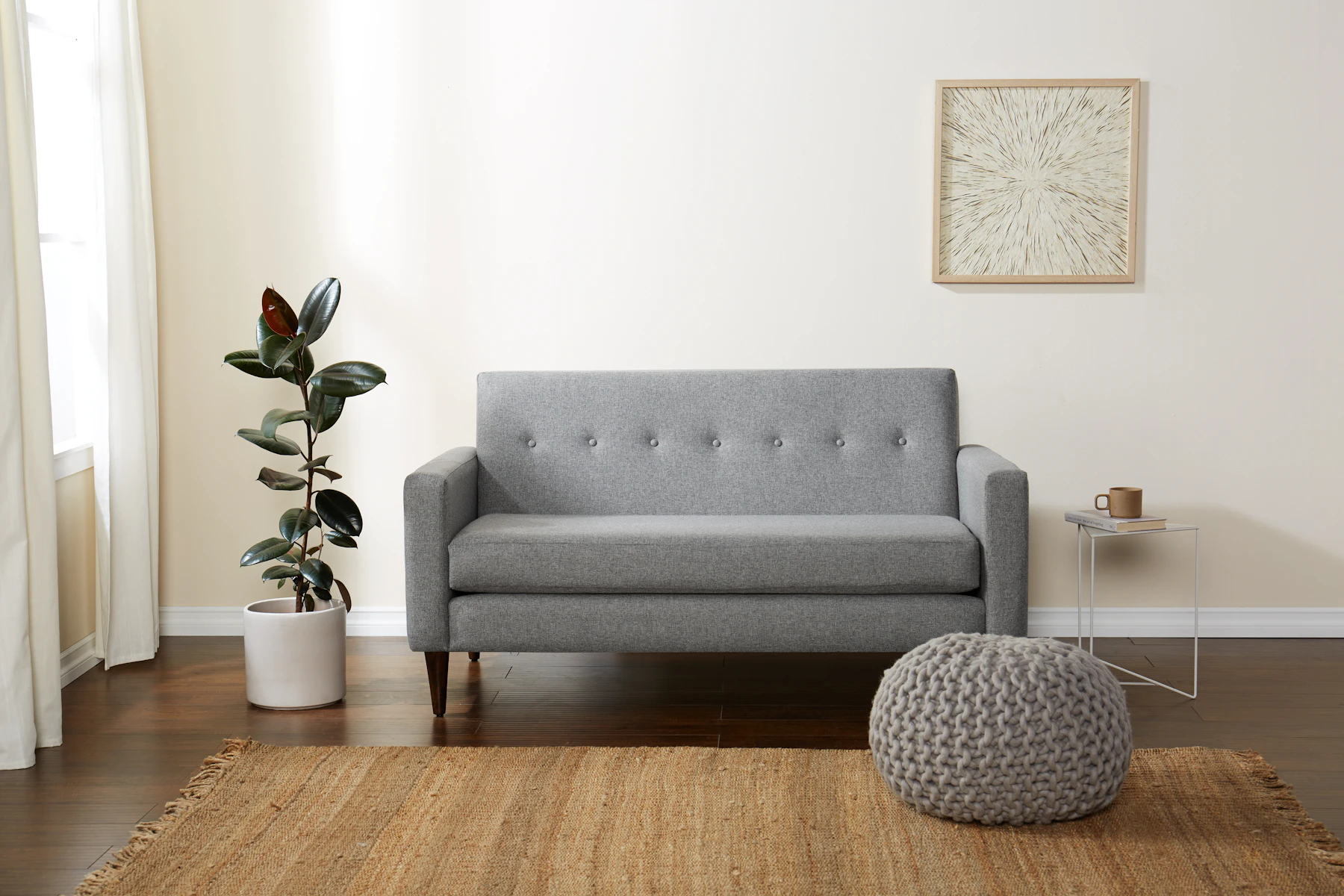 Timeless and adaptable, this sofa slots perfectly into every small space or home office. With its button tufted accents, ultra deep seats, and chic aesthetic, enjoy elevating your room layout with lasting notes of timeless sophistication.