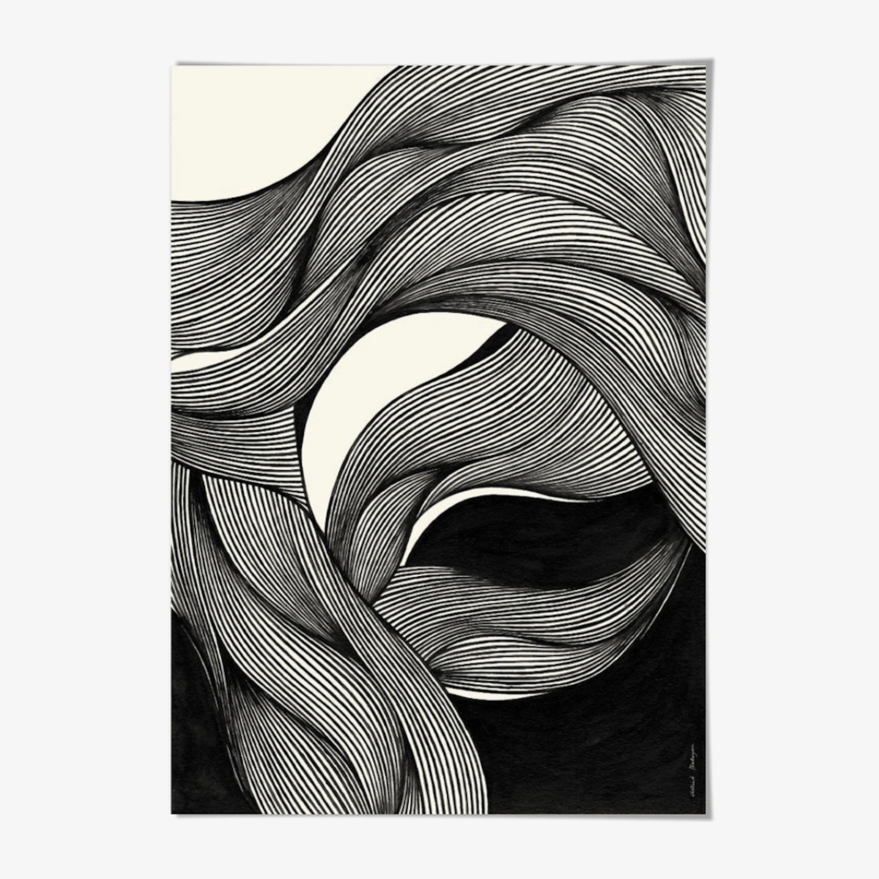 Using only black and white, this intricately drawn print uses linework to explore and create whimsical and ethereal shapes, for the ultimate visual interest for your walls.