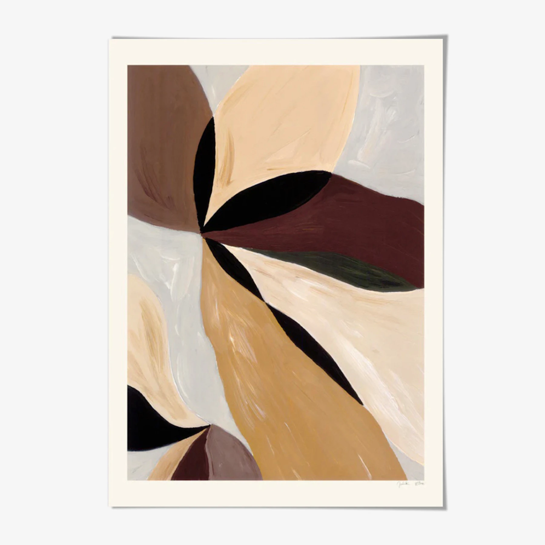 Using organic forms, lines, and colors to reimagine architectural and natural motifs, this print emphasizes color and paper texture to create new aesthetic expressions.