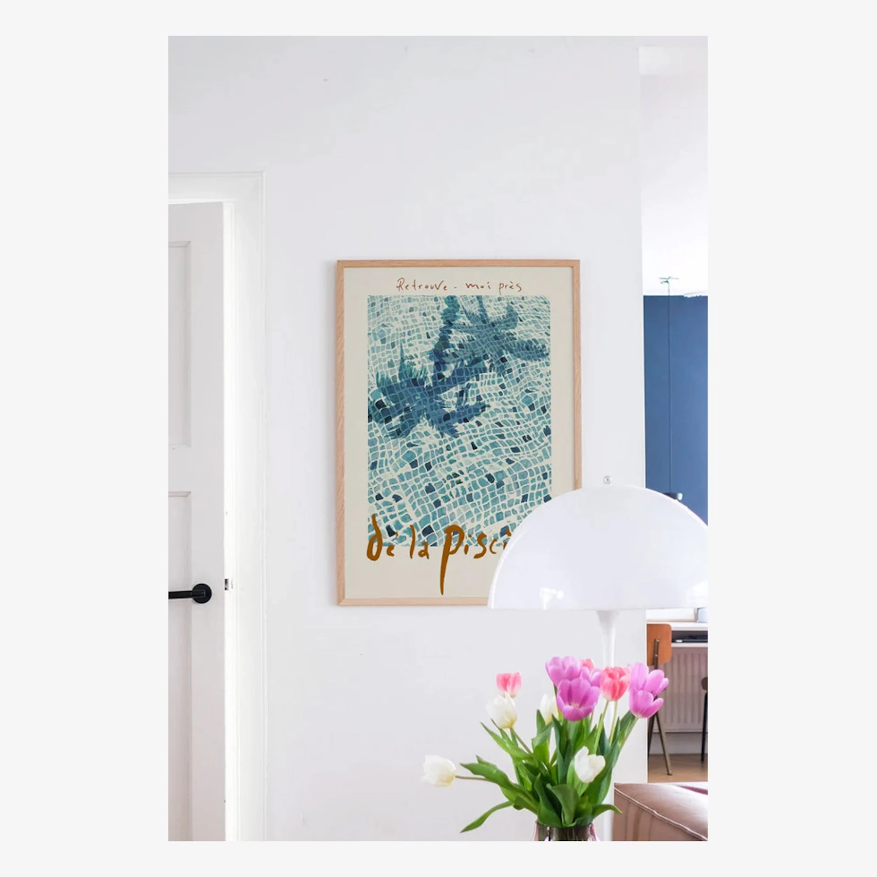 Sissan Richardt, a Danish artist, is known for her vibrant abstract works using bright inks, like La Piscine, which was inspired by reflections of poolside palm trees.