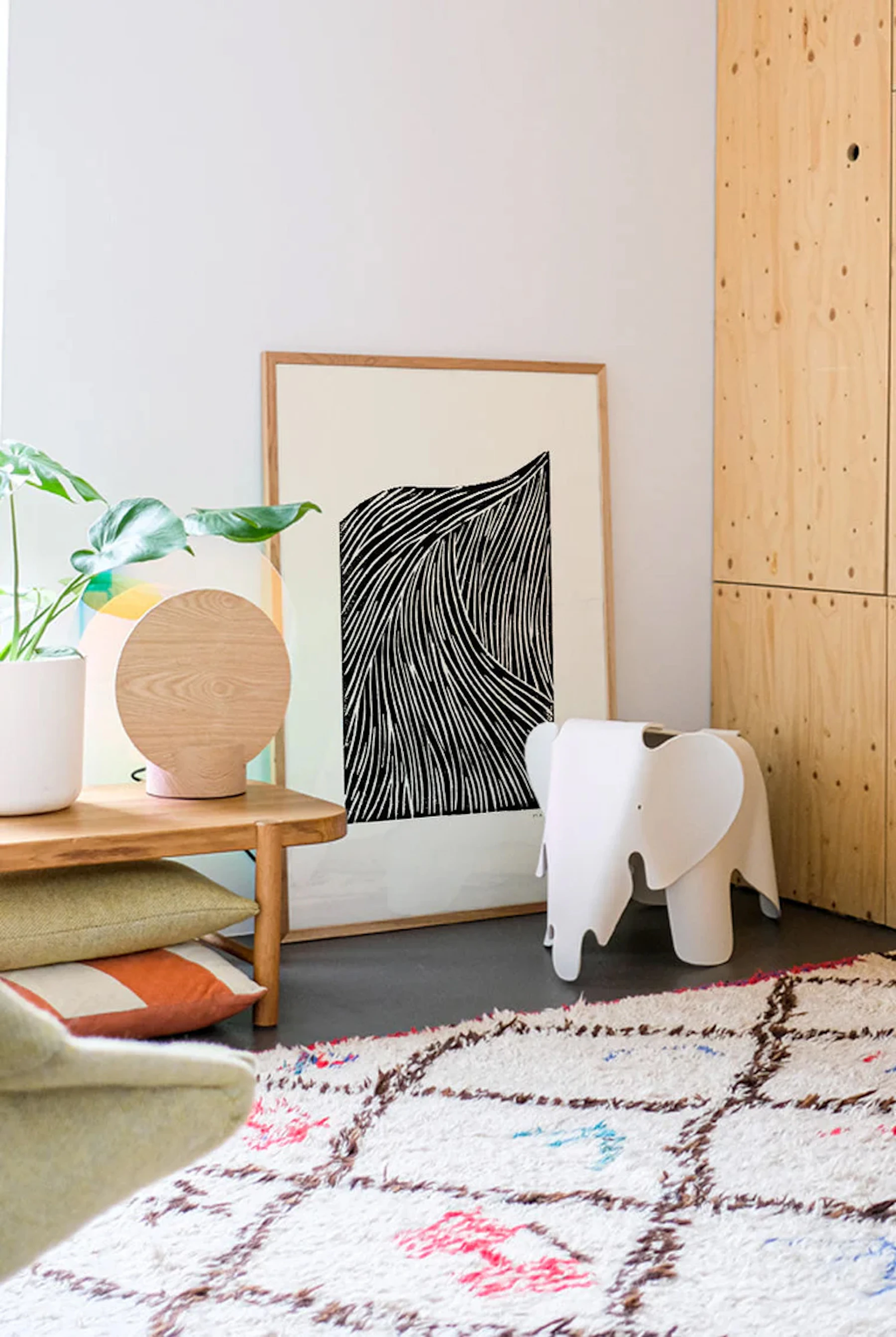 Using powerful monochromes through linocut technique, this print explore contrasts between emptiness and fullness, white and color.