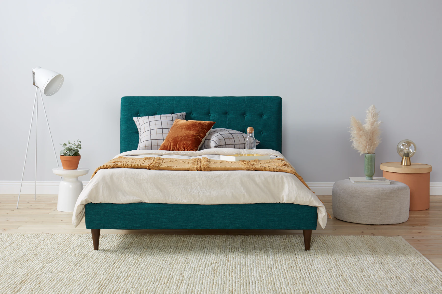 With its tufted button headboard and clean, MCM lines, it’s never been easier to add a pop of vintage flair to your bedroom. Drift off beneath its gorgeous upholstering or kick back for some breakfast in bed with this classic piece.