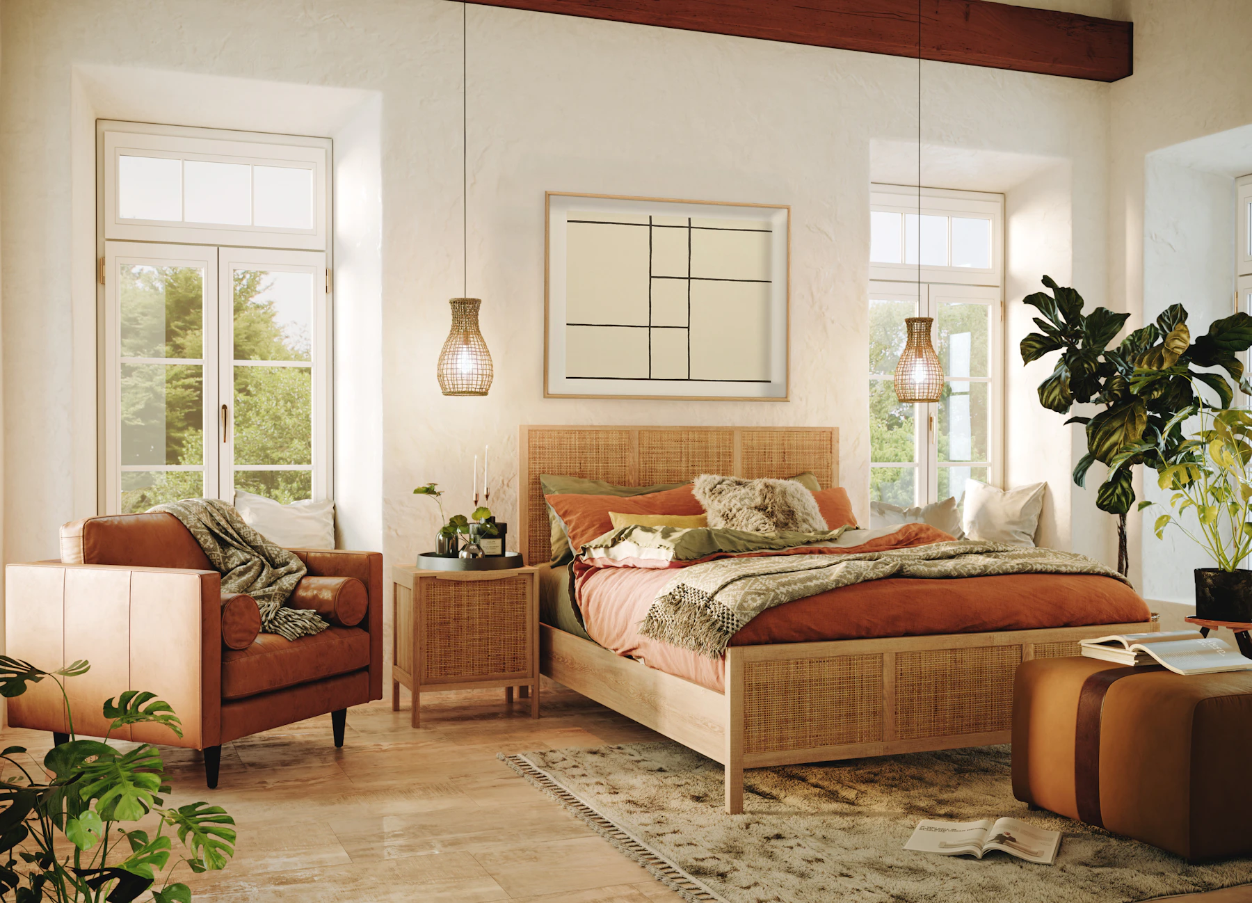 Pale mango wood blended with natural woven cane gives this bed a nod to mid-century modern design and will instantly brighten up any bedroom. Available in both Queen and King, the centerpiece of your bedroom set has arrived…and she’s a beaut!