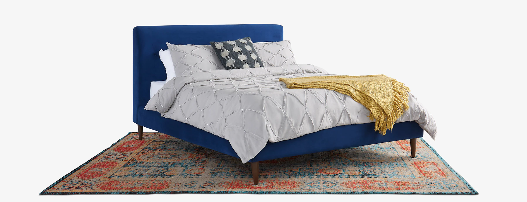 Sleek and chic, with understated Mid-century lines and tapered legs, this platform bed brings classic vintage design to your modern bedroom. Images display queen sized bed.