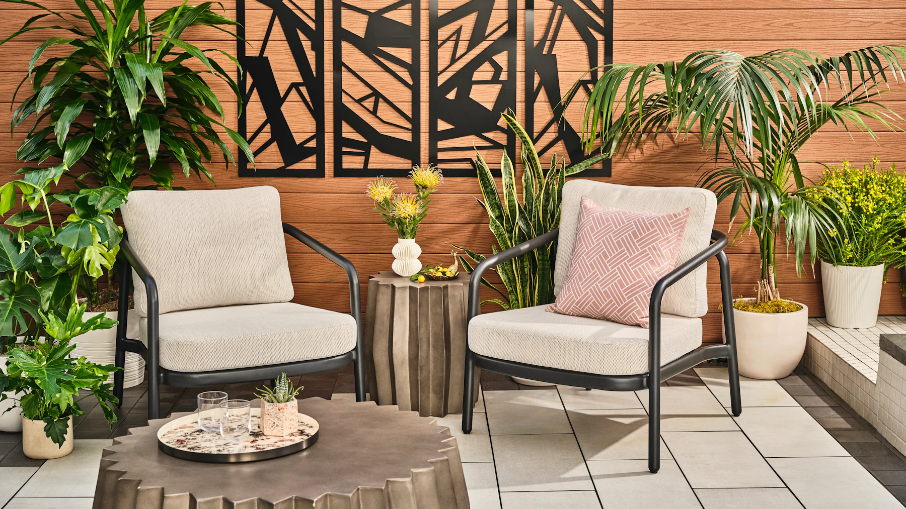 Showcasing a retro-inspired low slung rounded lightweight aluminum frame, and topped with a plush, cushioned seat and back, the Cia Chairs are the perfect choice for patios, balconies and backyards alike.
