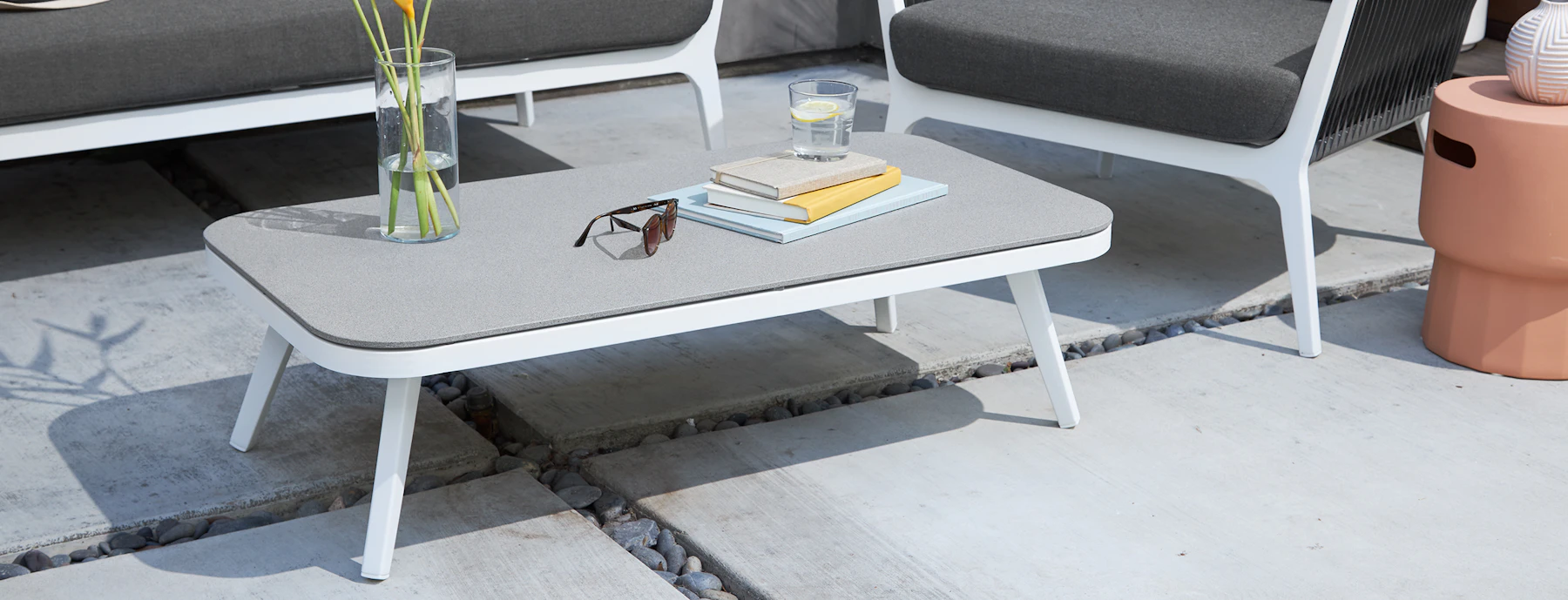 Modern design enthusiasts, your outdoor living space would like to give you a big thank you for amping up its wow factor with the Rizzo Outdoor Collection. Designed as a four-piece set, including a two-seater cushioned sofa, matching armchairs and perfectly curvy coffee table, this chic set adds an element of mid-century style to any deck, patio or backyard lounge spot that friends and family will enjoy for years to come.