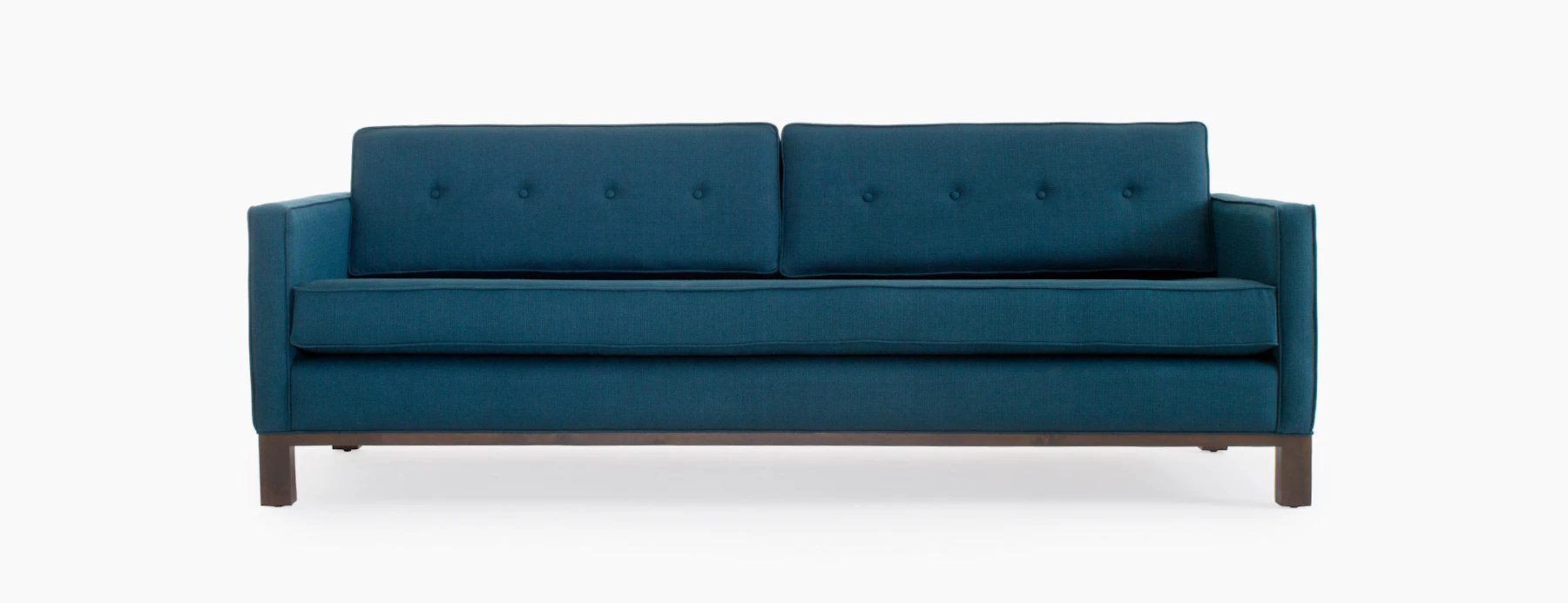 The Raine sofa is our embodiment of a clean-lined sofa, free of flourishes, but not without its signature details. Neatly tailored piping and button tufting establish this is a piece that can truly define any room, both modern or eclectic.
