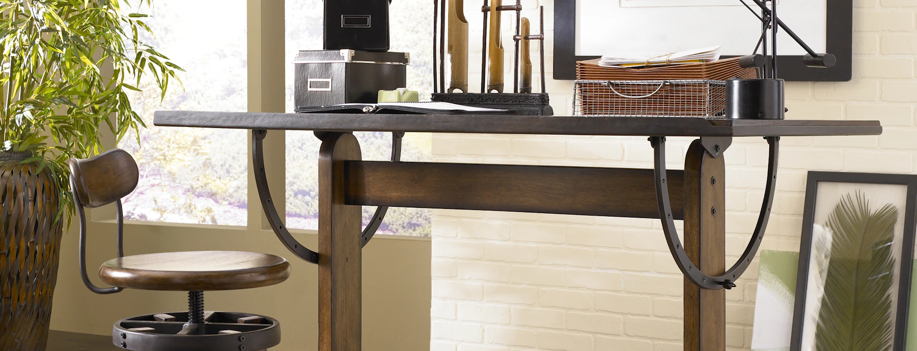 Putting classic vintage charm on display, the Yetta’s industrial, working character is highlighted with its black metal accents and adjustable table top, making this the perfect desk for artists, architects, and lovers of that old school vibe.