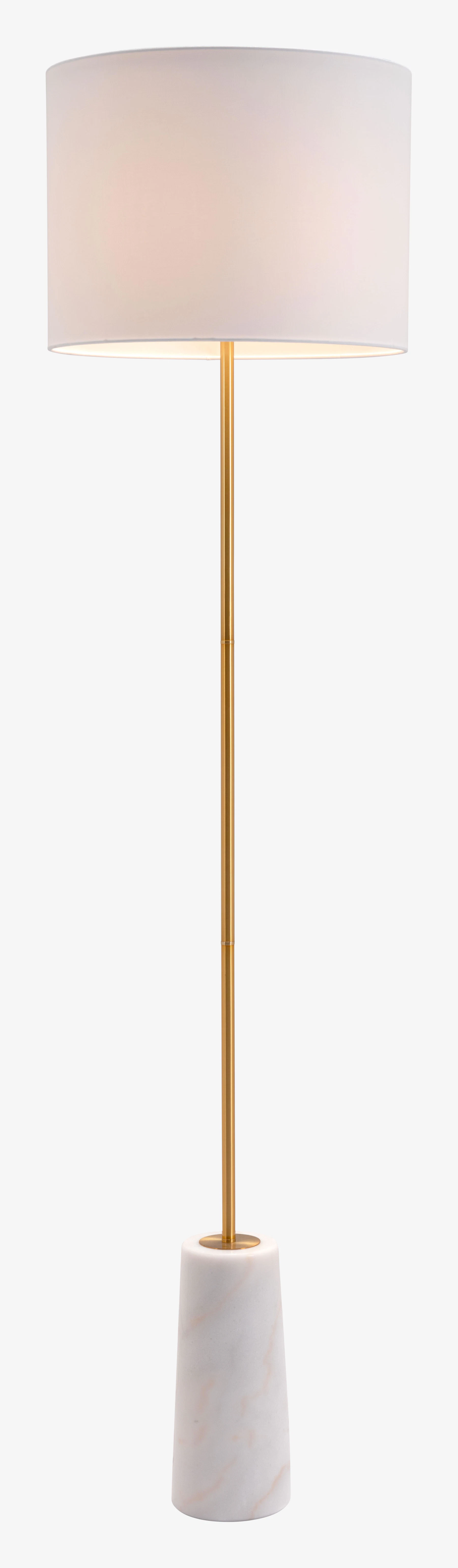 With its marble base and slim steel frame, the Brant Floor Lamp helps to illuminate your space, while leaving a small footprint. With its classic white drum shade, this lamp suits a number of styles well, due to its neutral appearance.