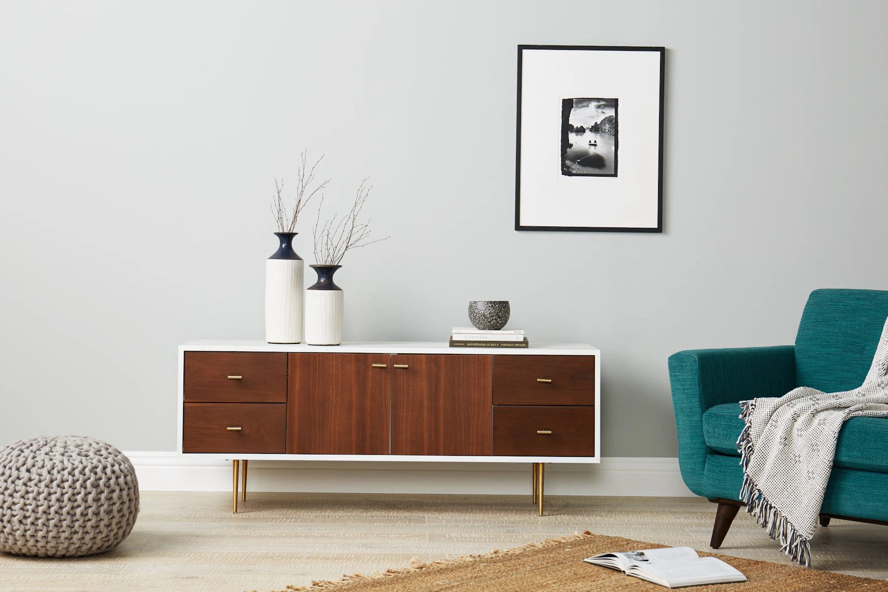 Boasting a big presence sized just right for smaller rooms, this console provides plenty of places to tuck away everything from electronics to board games.