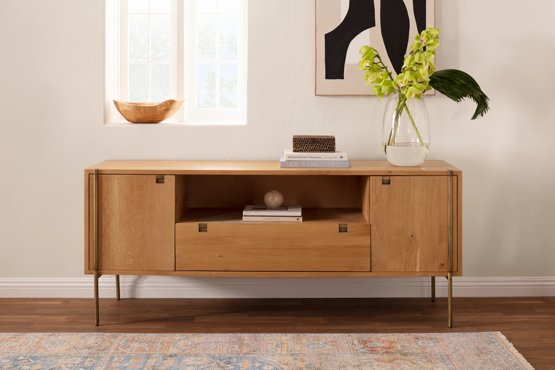 Less is more with the streamlined aesthetic of the Colette Media Console. A matchless combo of maximum functionality and minimal detailing, you’ll have plenty of room to tuck away those daily essentials, knick-knacks and other necessities with an heirloom-quality piece of furniture that’s simply radiating with simple, no-fuss style.