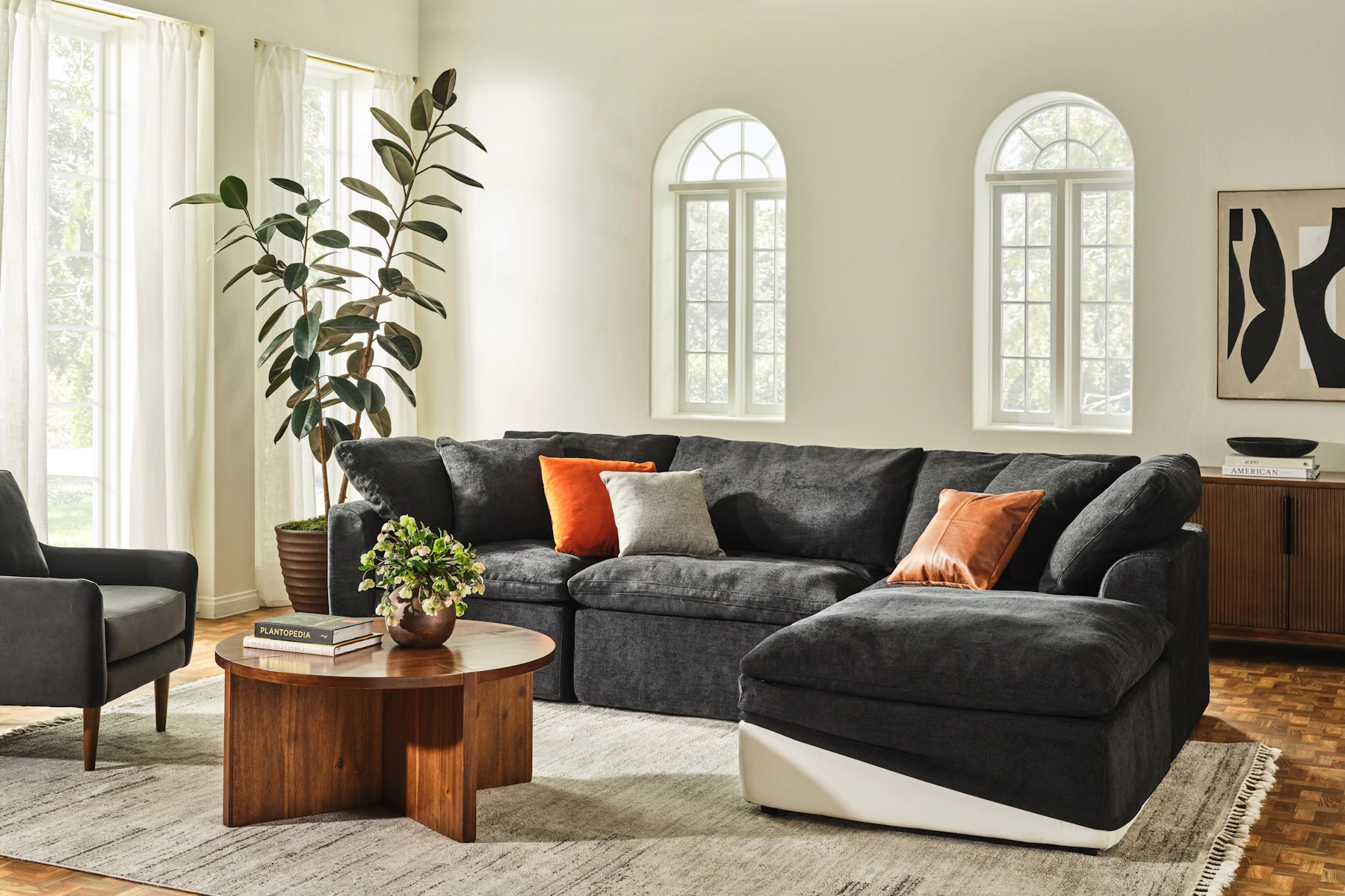 Stretch out on the enveloping cushions of this effervescent sectional. Kick back on its low-slung arms, ultra deep cushions, and pillowed backs - there’s no better way to lounge! When you’re ready to switch things up, simply throw on a slipcover from our selection of popular fabrics, and instantly transform your piece.