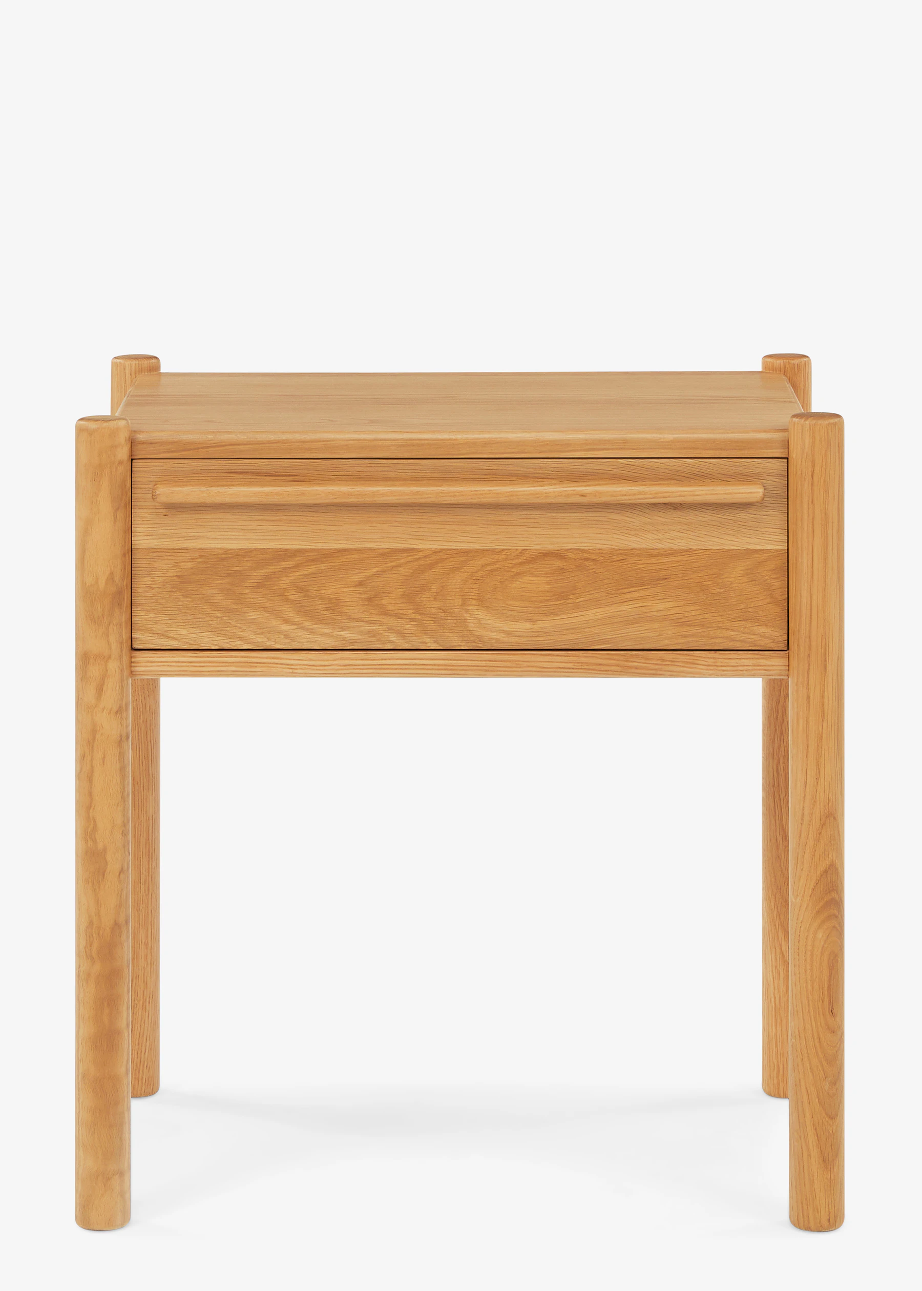 Crafted with oak wood, the Juniper brings a timeless look to your bedroom with its tall peg style legs, spacious table top and drawer and light wood stain.
