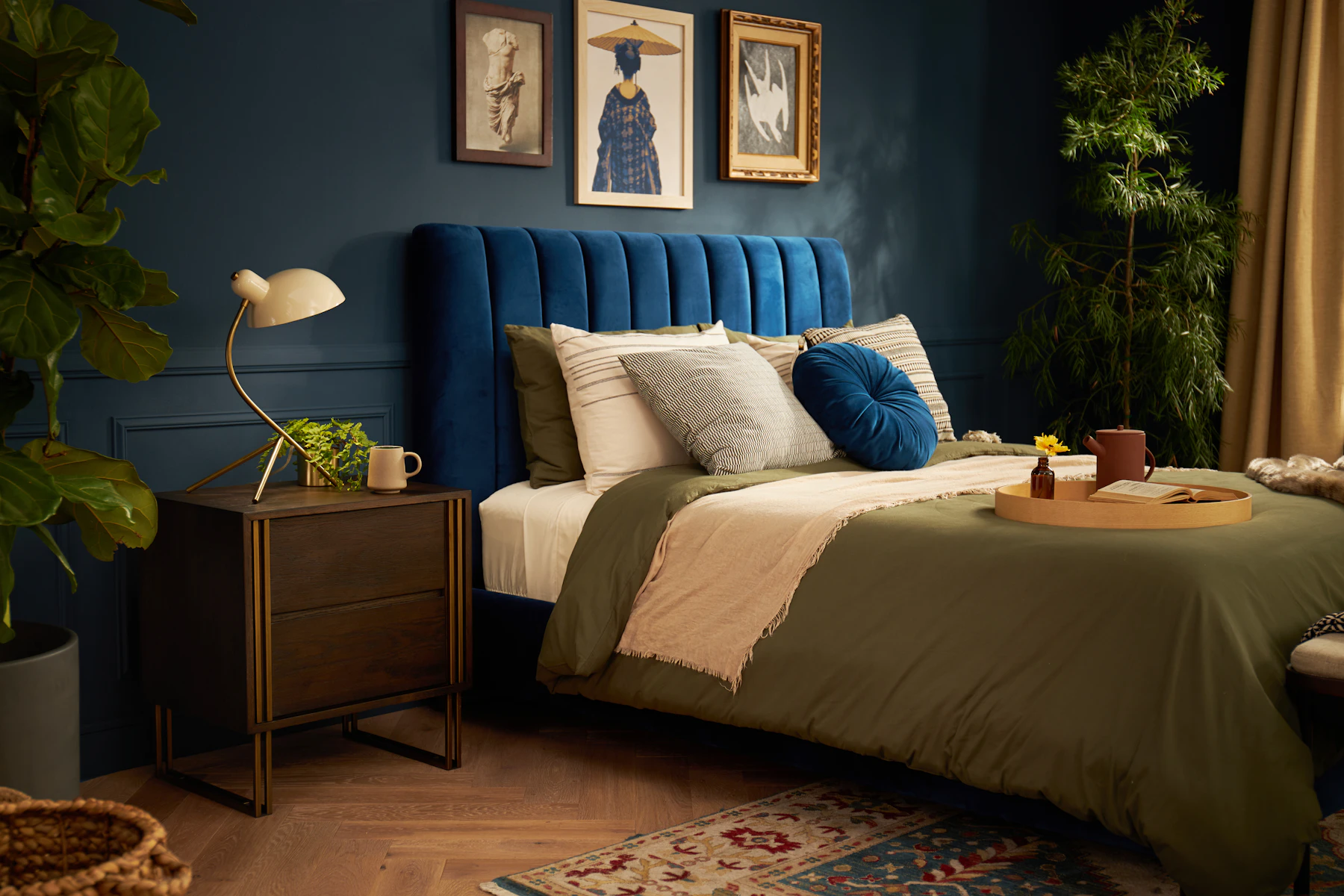 Golden iron accents contrast perfectly with the rubbed black oak of this nightstand for a look that’s one-of-a-kind top to bottom. An impeccable mix of mid-century design and modern style that’s sure to elevate the look of your space. Raised up on a slim double-legged frame, with two roomy drawers for bedside essentials, this nightstand ensures all your needs are right at hand, saving you from having to get out from under those cozy covers.