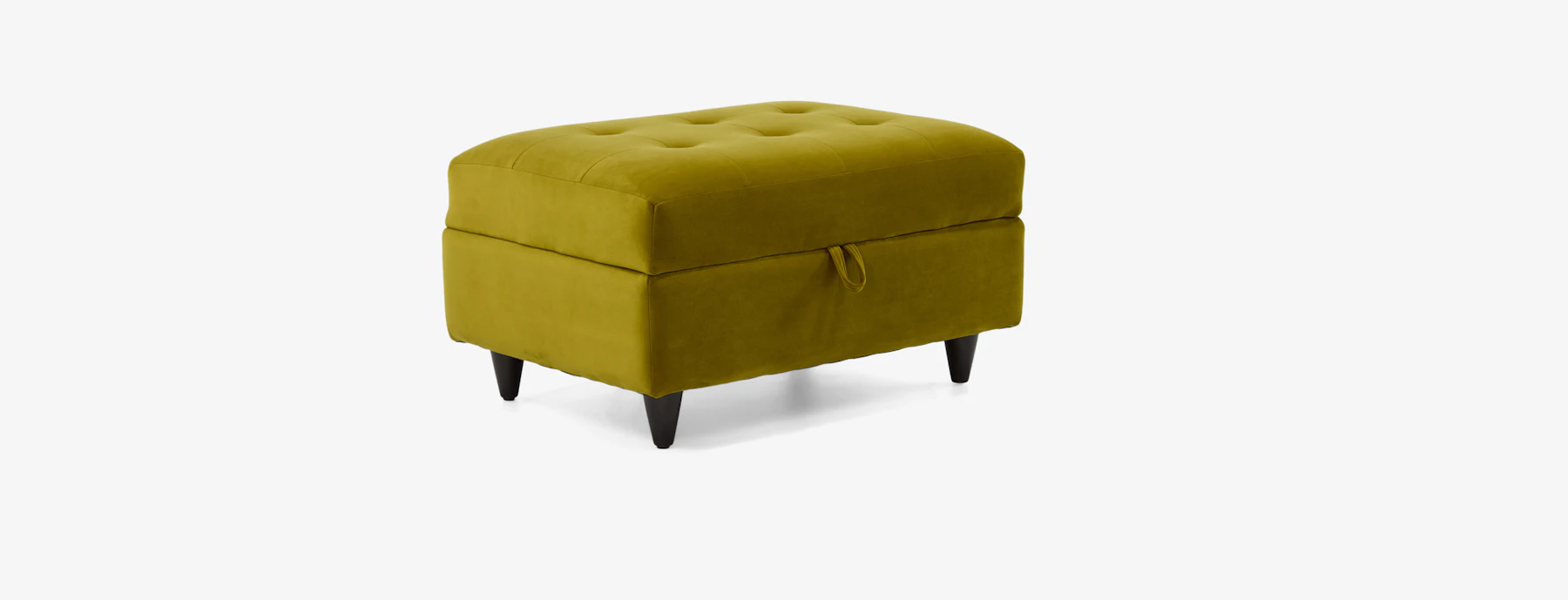 Combining a timeless silhouette with a comfortable design and added pop of storage, the Eliot Storage Ottoman brings a Mid-Century polish to any lounge.