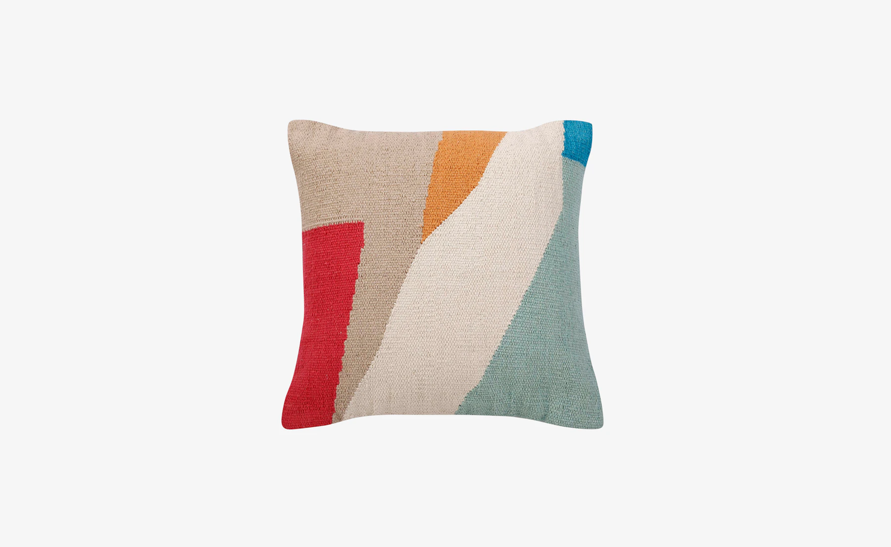 Inspired by the landscape of a Himalayan city, the Jerica Pillow features a collection of colorblocking bright, muted and cool tones against natural beige for the ultimate accent piece.