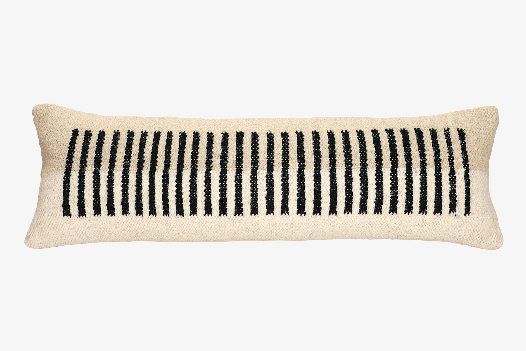 The perfect neutral pillow for your space, the Pepper Sahara Lumbar Pillow showcases a striped pattern, ethically handcrafted with the utmost care by Indian artisans using traditional weaving techniques and includes a polyester insert.
