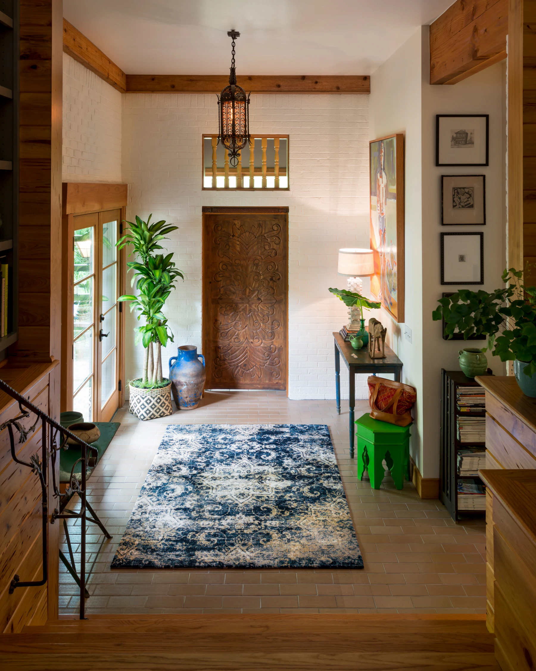 Rich navy and ivory colors mingle with a bold pattern in the Bishop Rug, sure to bring a level of sophistication to your floors.