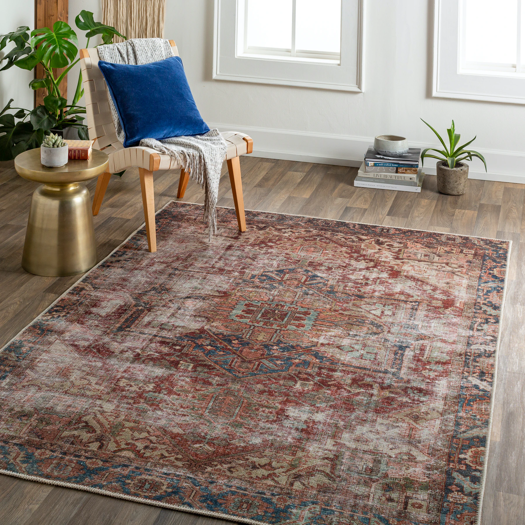 Inspired by classic Persian designs, the Garnet Washable Rug combines retro elegance with a modern distressed and faded look, for a rug that exudes a worn-in, cozy vibe. Plus, its ability to be machine washable means you never have to sweat another spill!