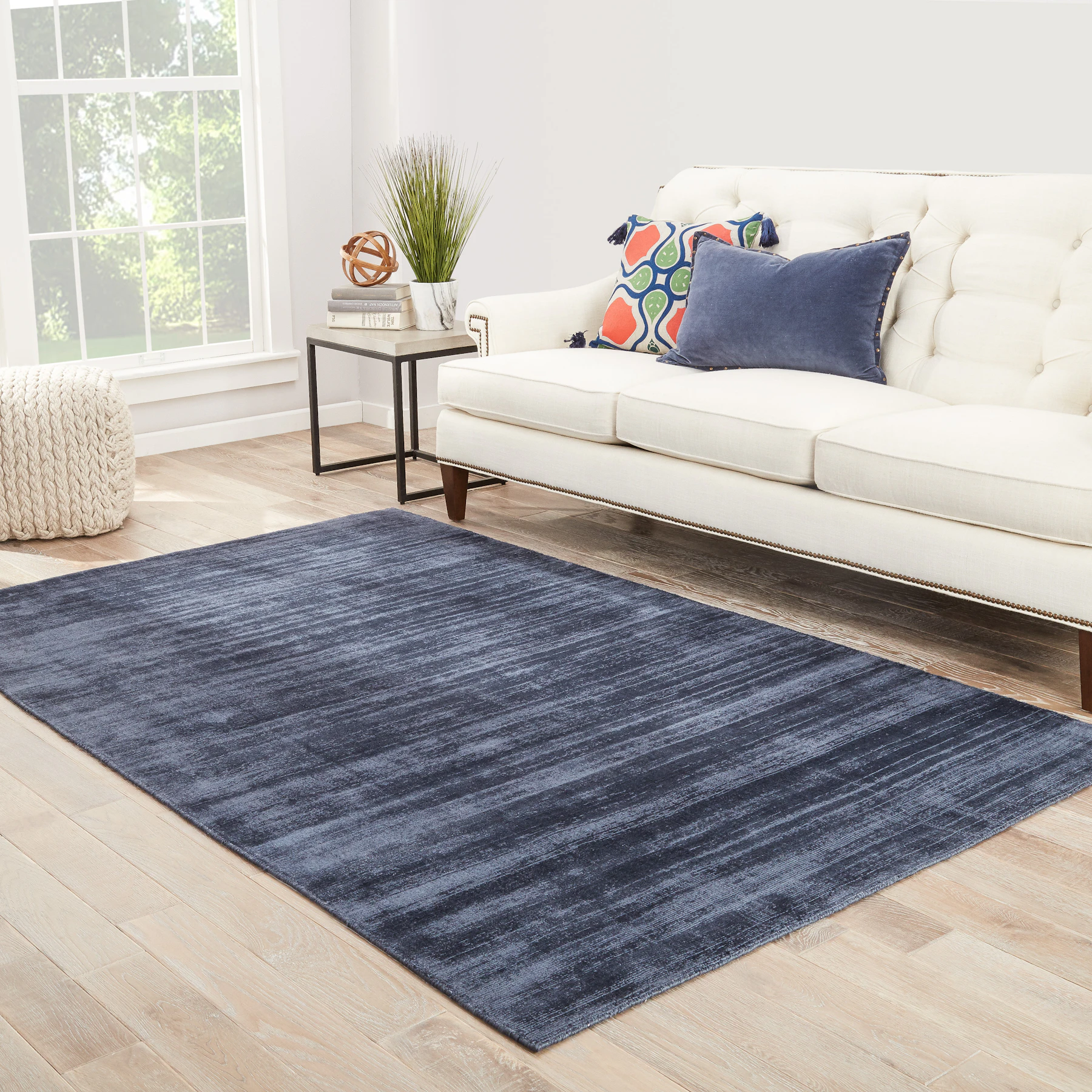 Effortless luxury at its finest, the Midnight Minerva Rug showcases a super-soft hand loomed viscose area rug in a solid blue-gray hue. With its dazzling luster and intentionally distressed look, it fits right in to any glam bedroom, while its ability to be machine washed adds a layer of practicality.