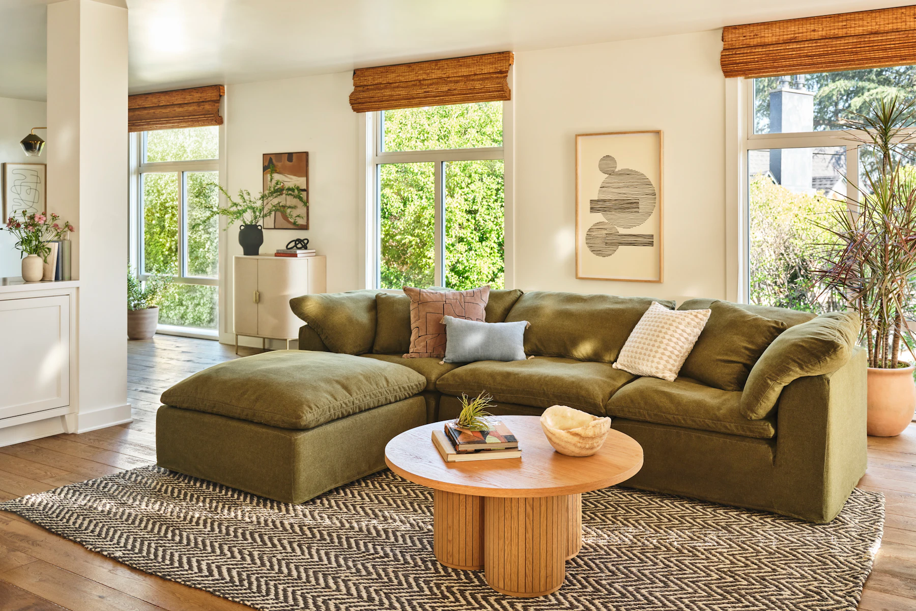 With a plucky herringbone pattern that’s as fresh as it is timeless, this hand-woven jute rug is a classy way to tie a room together with both texture and warmth.