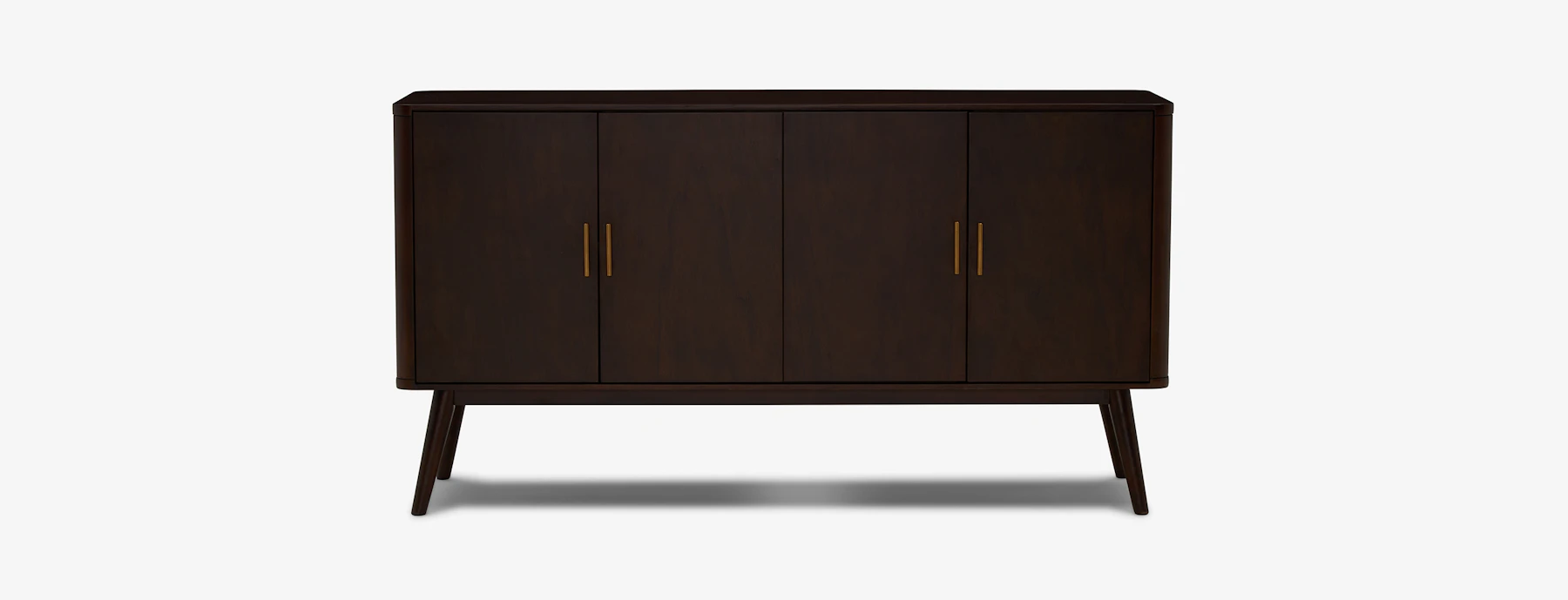 Sleek MCM inspired lines, antiqued brushed gold hardware, and angled tapered legs make the Owen a no-brainer for retro lovers. Plus, Its spacious shelved cabinets allow you to keep all your essentials neatly tucked away.