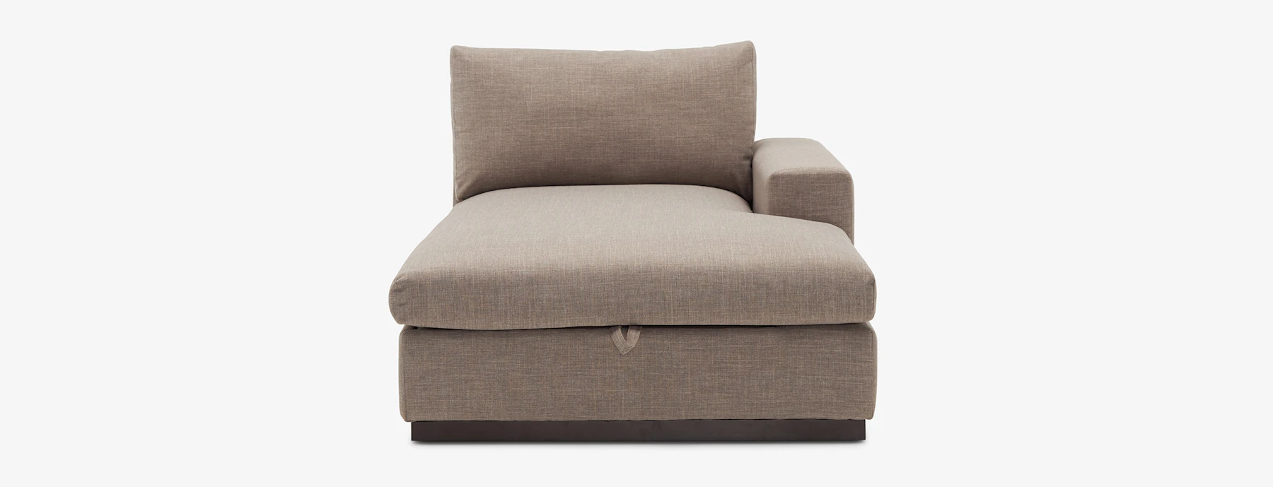 A bold addition to any modular arrangement, this storage chaise delivers unparalleled comfort via a contemporary flair. Combining a pillowed back, wide armrest, and deep cushioning with an extra touch of storage, this standout chaise is the go-to option for those looking to kick back and relax.