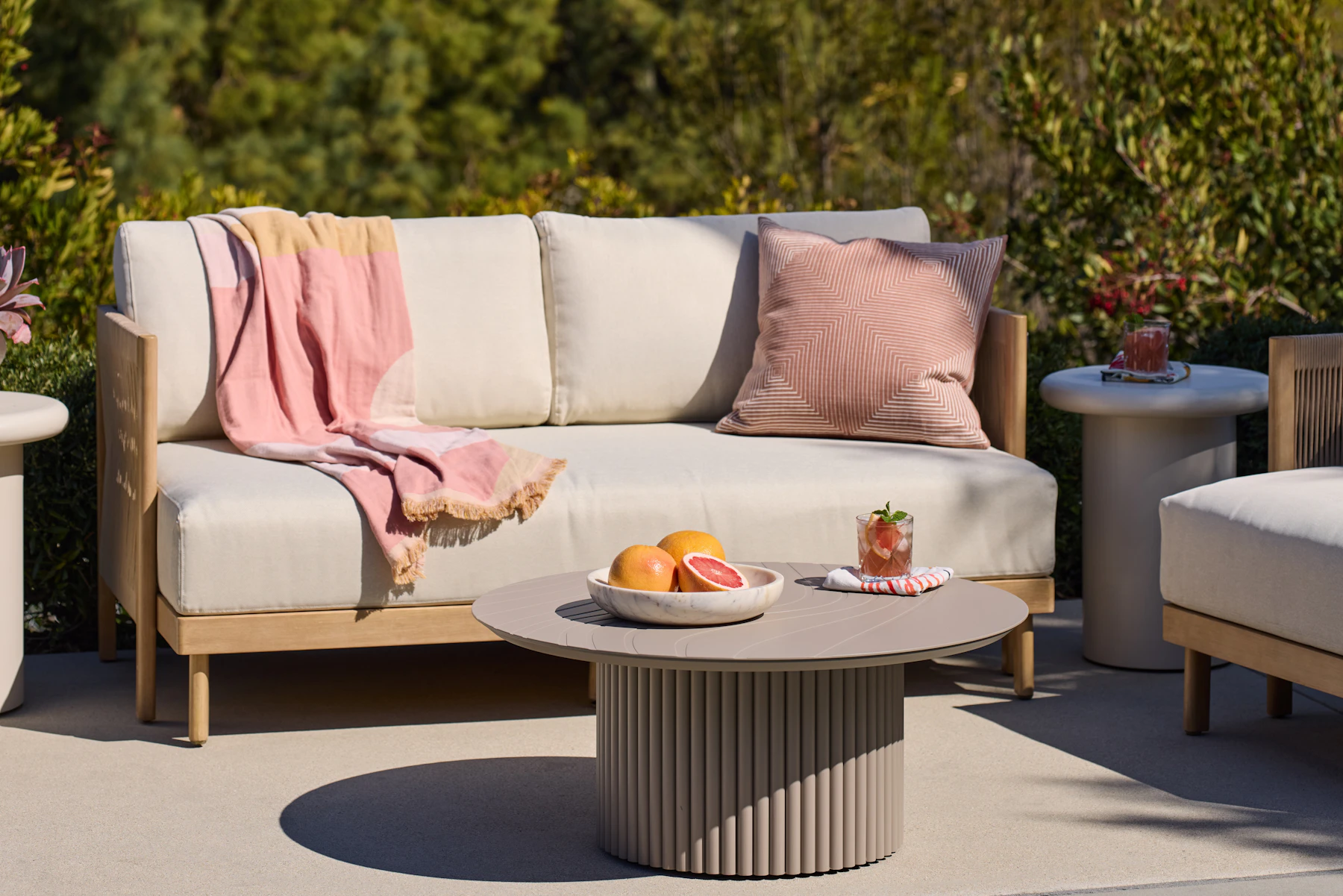 Crafted with FSC certified eucalyptus wood, accented with woven rope detailing on the arms and back, and topped with cozy cream cushions, the Cruz is the perfect choice for backyards and balconies alike.