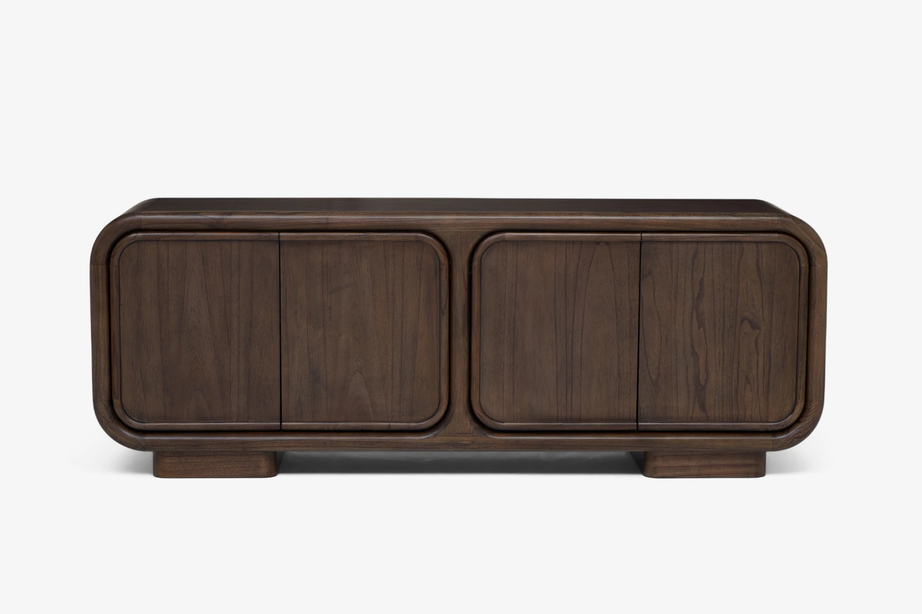 Designed with clean lines and softly curved edges, the Alina blends modern simplicity with natural wood texture for a chic, grounded feel. Two sets of double doors open to reveal adjustable shelving, and include cut out in the back for cord management.