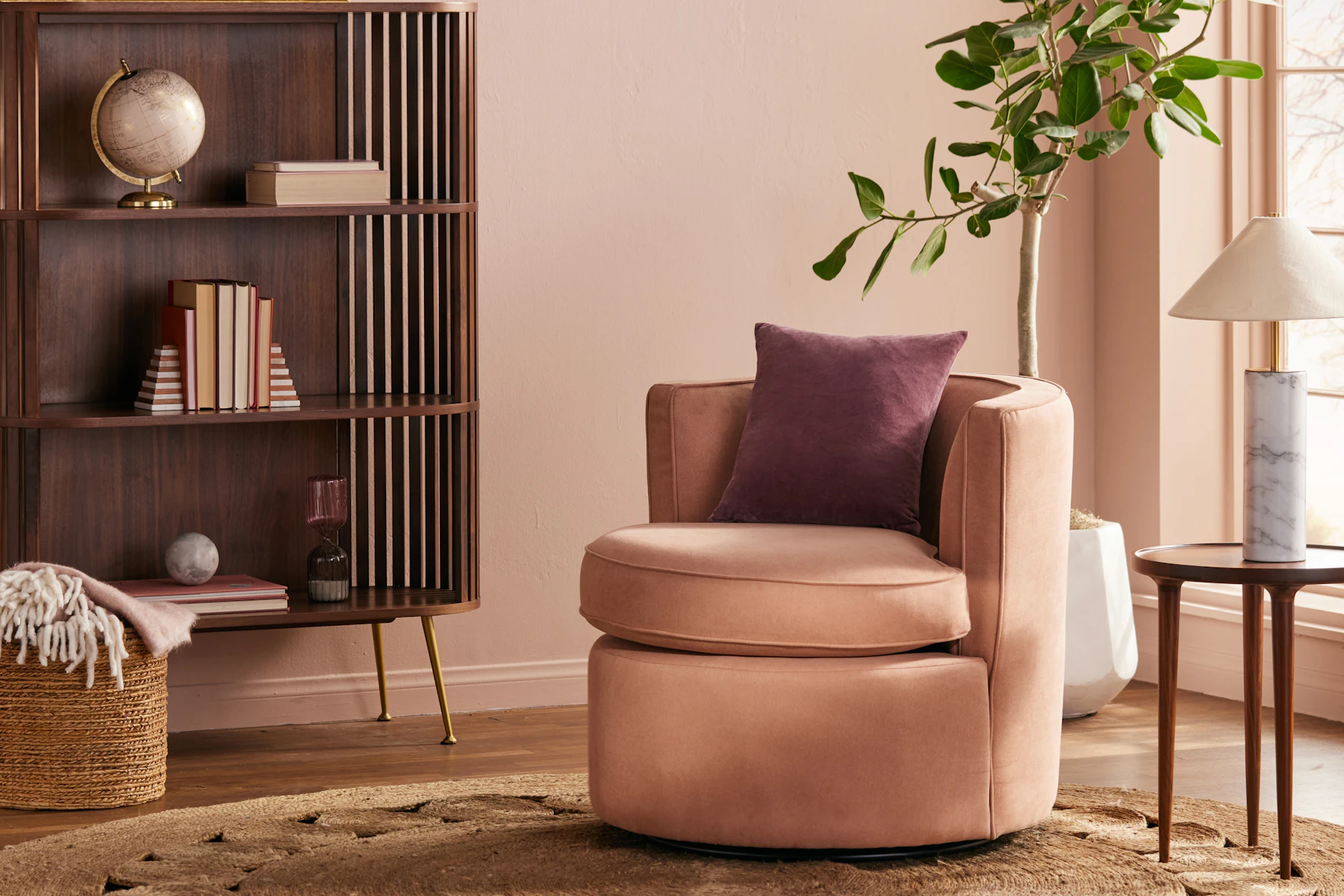 Built by hand, we packed a lot of classic style into our Carly Swivel Seat. Clean curvy lines with a pleasantly circular appearance makes this accent chair stand out from the crowd while offering an impeccably inviting place to sit back and relax.