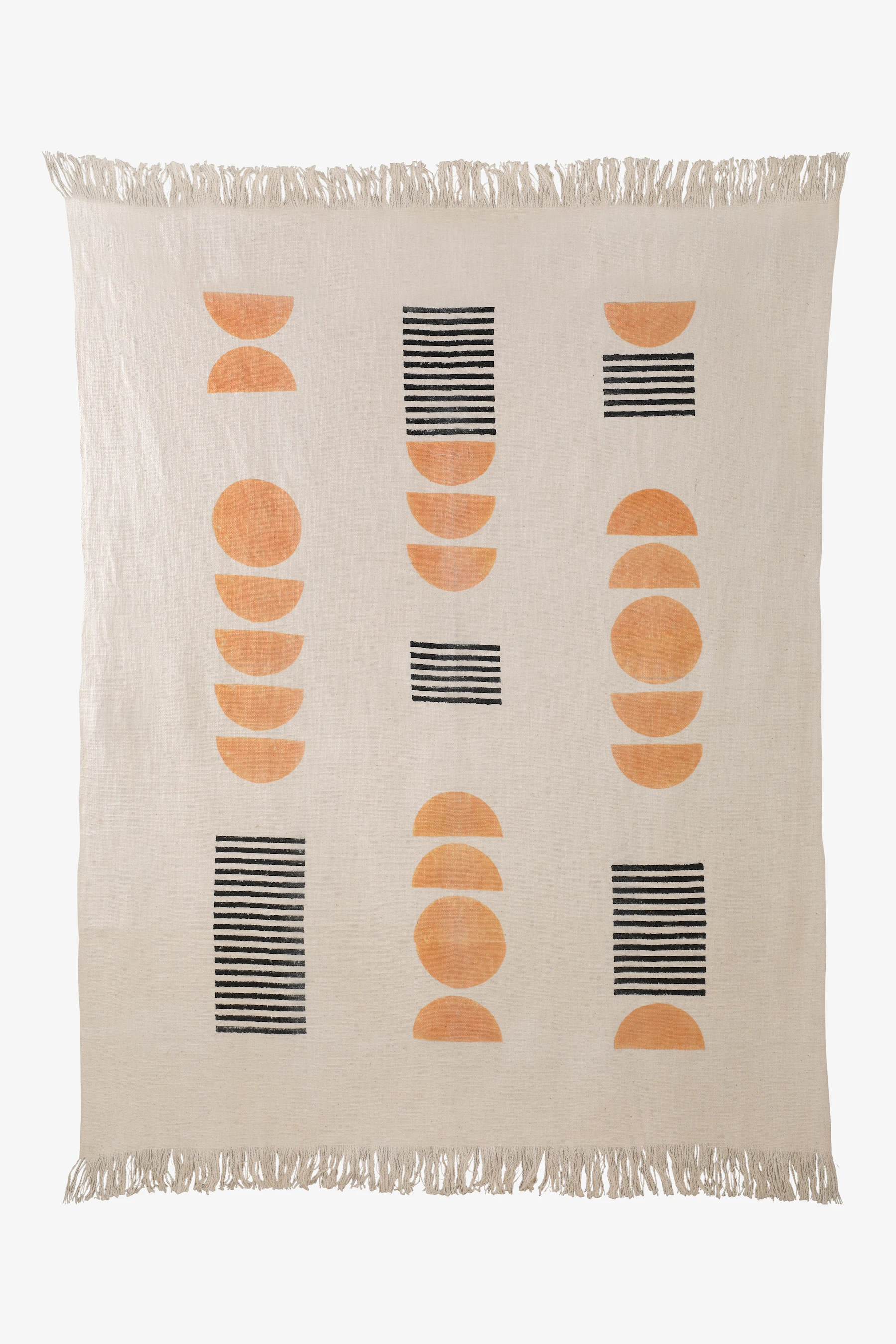 Showcase some serious bohemian style with this hand block printed lightweight cotton throw, featuring contrasting circular and lined patterns, and fringed edges for a chic, yet modern addition to your sofas, beds and chairs.