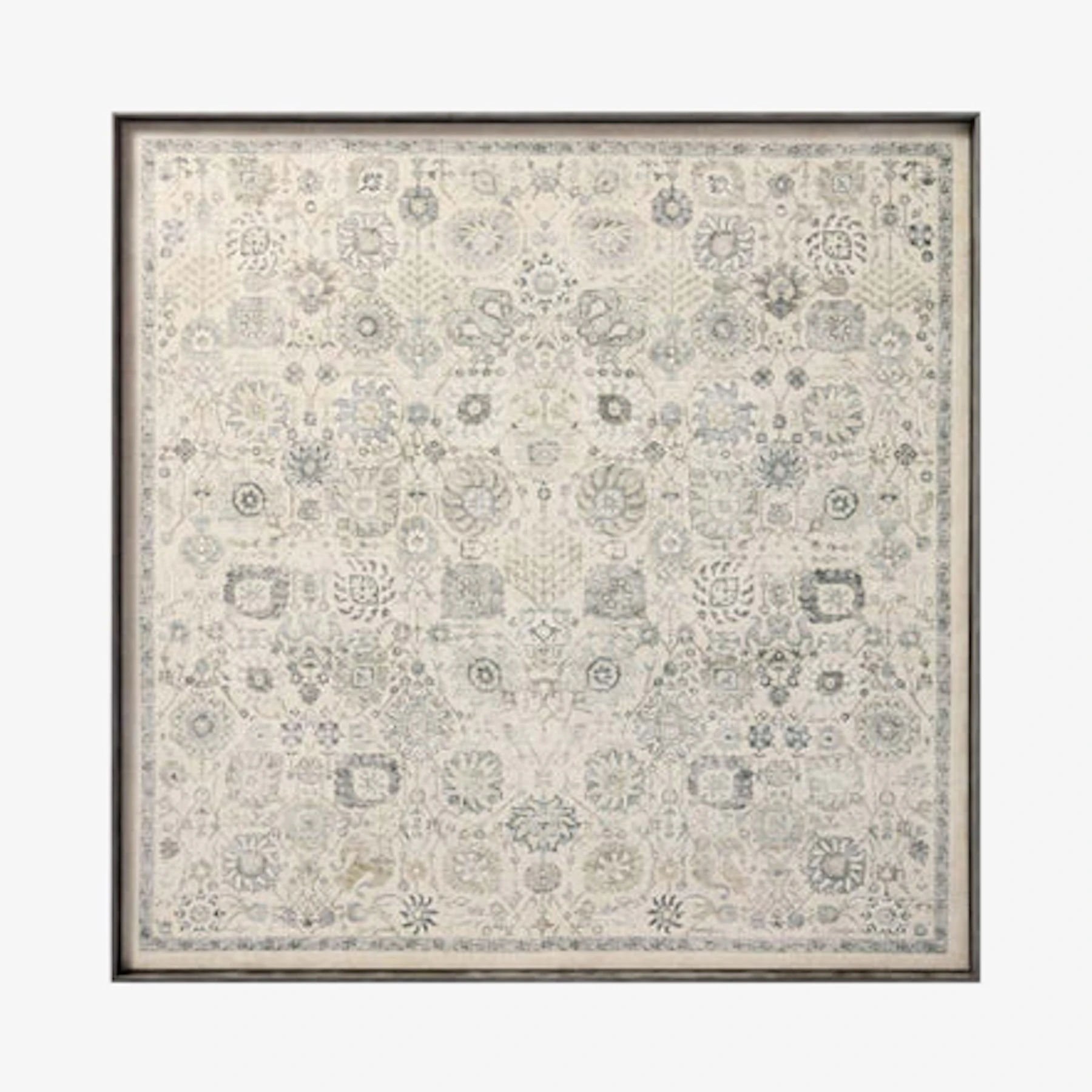 Stunningly retro, the Barrett Wall Art features a framed piece of beige and blue woven floral paisley tapestry-style artwork.