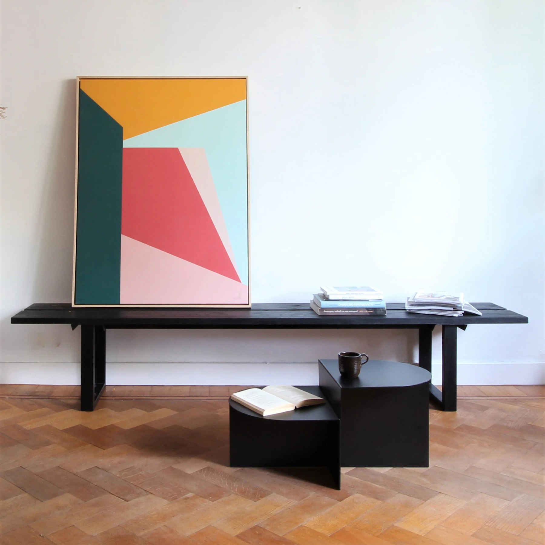 Modern and abstract, the Masey wall arts combines clean lines and bright colors in mustard, green, blue and light and dark pink hues for the ultimate statement piece for your walls.