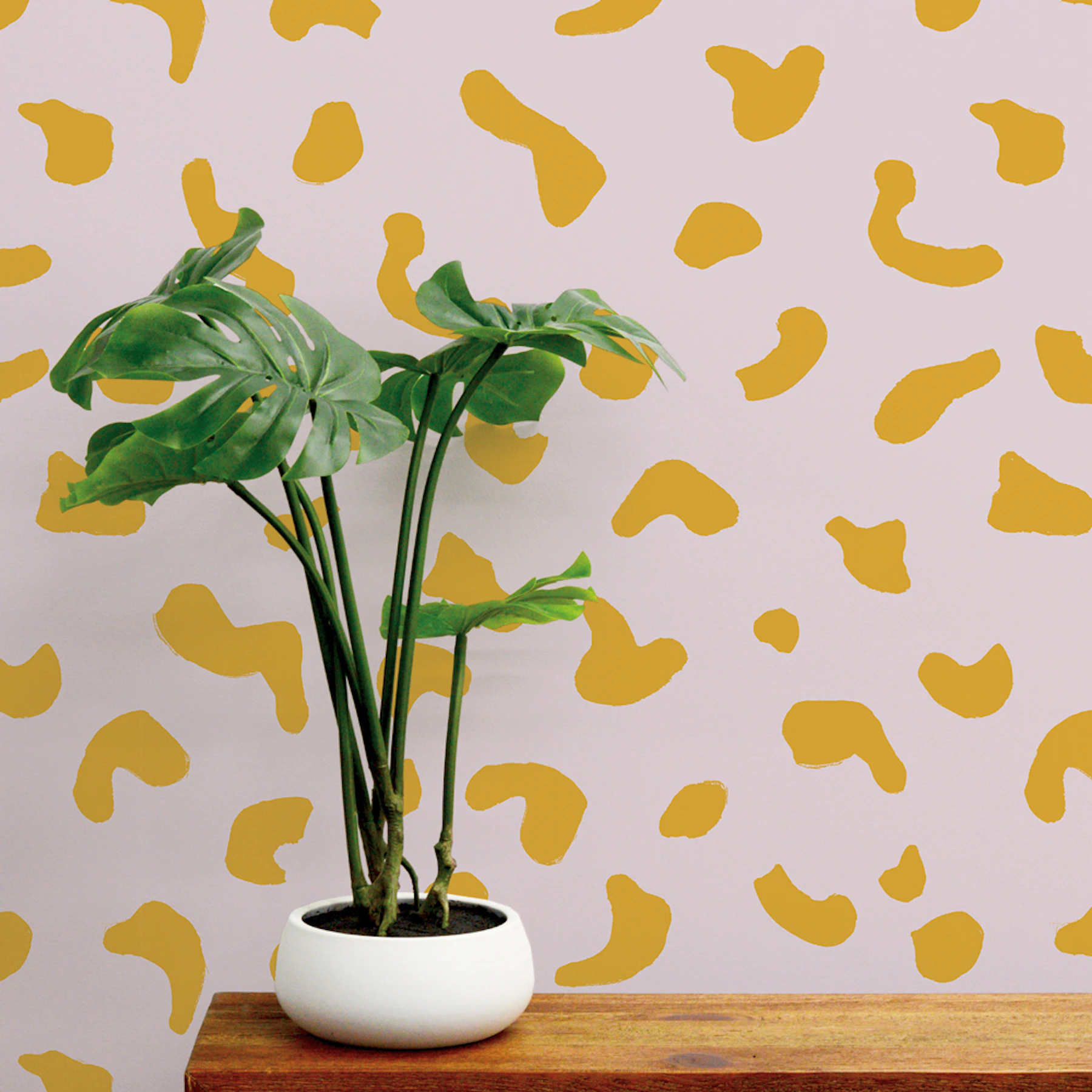 Bring the safari into your home with this bold, abstract wallpaper in a pink and yellow colorway, inspired by the graceful leopard.